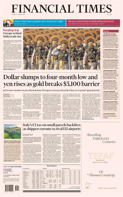 金融时报(Financial Times)2026年1月27日 2026-01-28 英文日报 48 推广 资源下载下载价格1 杂志币VIP免费立即购买温馨提示:本站分享链接类型为永久,链接可能会被官方检测和谐,如果链接失效,将不再重新补链接 常见问题 杂志存储在哪里以加密方式存储在迅雷网盘 0 Financial Times金融时报