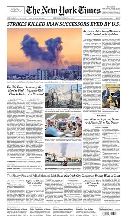 纽约时报(The New York Times)2026年3月4号 2026-03-09 英文日报 11 推广 资源下载下载价格1 元VIP免费立即购买温馨提示:本站分享链接类型为永久,链接可能会被官方检测和谐,如果链接失效,将不再重新补链接 常见问题 杂志存储在哪里以加密方式存储在迅雷网盘 0 The New York Times纽约时报
