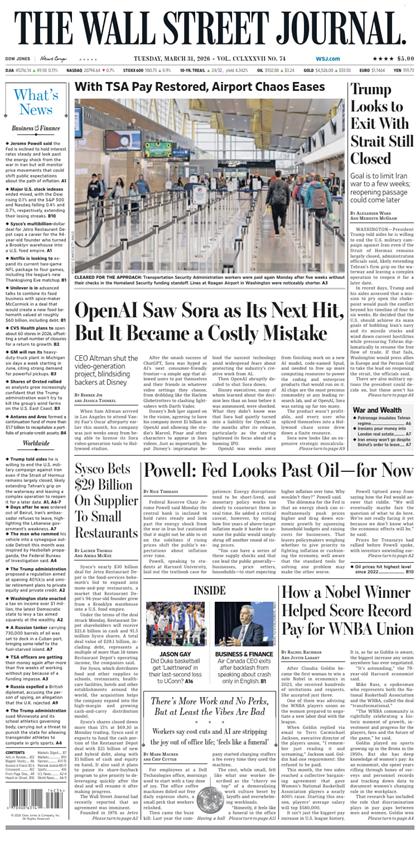 华尔街日报(The Wall Street Journal)2026年3月31日 2026-03-31 英文日报 32 推广 资源下载下载价格1 元VIP免费立即购买温馨提示:本站分享链接类型为永久,链接可能会被官方检测和谐,如果链接失效,将不再重新补链接 常见问题 杂志存储在哪里以加密方式存储在迅雷网盘 0 The Wall Street Journal华尔街日报